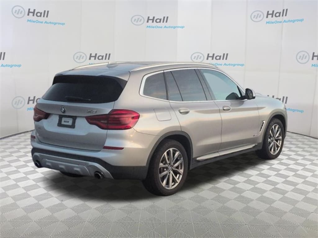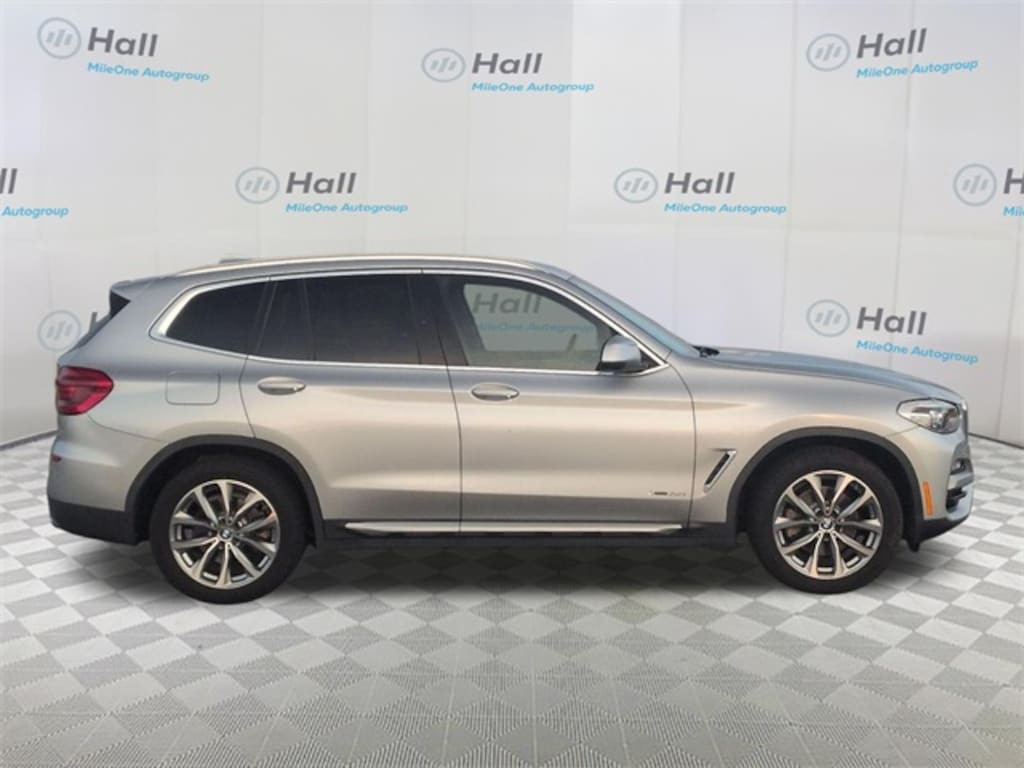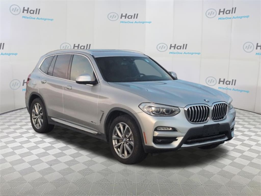 Clean CARFAX. Glacier Silver Metallic 2018 BMW X3 xDrive30i AWD 8-Speed Automatic 2.0L I4 TwinPower Turbo We are currently offering Vehicle Purchase Home Delivery by appointment. Please contact for details., 8-Speed Automatic, 12 Speakers, 3.385 Axle Ratio, 4-Wheel Disc Brakes, ABS brakes, Active Blind Spot Detection, Active Driving Assistant, Advanced Real-Time Traffic Information, Air Conditioning, Alloy wheels, AM/FM radio, Ambiance Lighting, Anti-Theft AM/FM Stereo CD/MP3 Player, Auto-dimming door mirrors, Auto-dimming Rear-View mirror, Automatic temperature control, Brake assist, Bumpers: body-color, CD player, Comfort Access Keyless Entry, Delay-off headlights, Driver door bin, Driver vanity mirror, Dual front impact airbags, Dual front side impact airbags, DVD Area Coding (North America), Electronic Stability Control, Emergency communication system: BMW Assist eCall, Exterior Parking Camera Rear, Four wheel independent suspension, Front anti-roll bar, Front Bucket Seats, Front Center Armrest, Front dual zone A/C, Front fog lights, Front reading lights, Fully automatic headlights, Garage door transmitter, Genuine wood dashboard insert, Genuine wood door panel insert, Hands-Free Bluetooth & USB Audio Connection, Head-Up Display, Heated door mirrors, Heated Front Seats, Heated Steering Wheel, Hi-Fi Sound System, Illuminated entry, In-Dash CD Player, Knee airbag, Lane Departure Warning System, LED Headlights w/Cornering Lights, Low tire pressure warning, Lumbar Support, Memory seat, Navigation System, Occupant sensing airbag, Outside temperature display, Overhead airbag, Panic alarm, Panoramic Moonroof, Park Distance Control, Passenger door bin, Passenger vanity mirror, Power door mirrors, Power driver seat, Power Front Seats, Power Liftgate, Power passenger seat, Power steering, Power windows, Radio Control US, Radio data system, Rain sensing wipers, Rear air conditioning, Rear anti-roll bar, Rear reading lights, Rear seat center armrest, Rear window defroster, Rear window wiper, Remote keyless entry, Remote Services, Roof rack: rails only, Security system, SensaTec Upholstery, SiriusXM Satellite Radio, Speed control, Speed-sensing steering, Speed-Sensitive Wipers, Split folding rear seat, Spoiler, Sport Seats, Sport steering wheel, Steering wheel mounted audio controls, Tachometer, Telescoping steering wheel, Tilt steering wheel, Traction control, Trip computer, Turn signal indicator mirrors, Variably intermittent wipers, Wheels: 18" x 7.0" Y-Spoke (Style 688), Wheels: 19" x 7.5" (Style 692), 8-Speed Automatic.