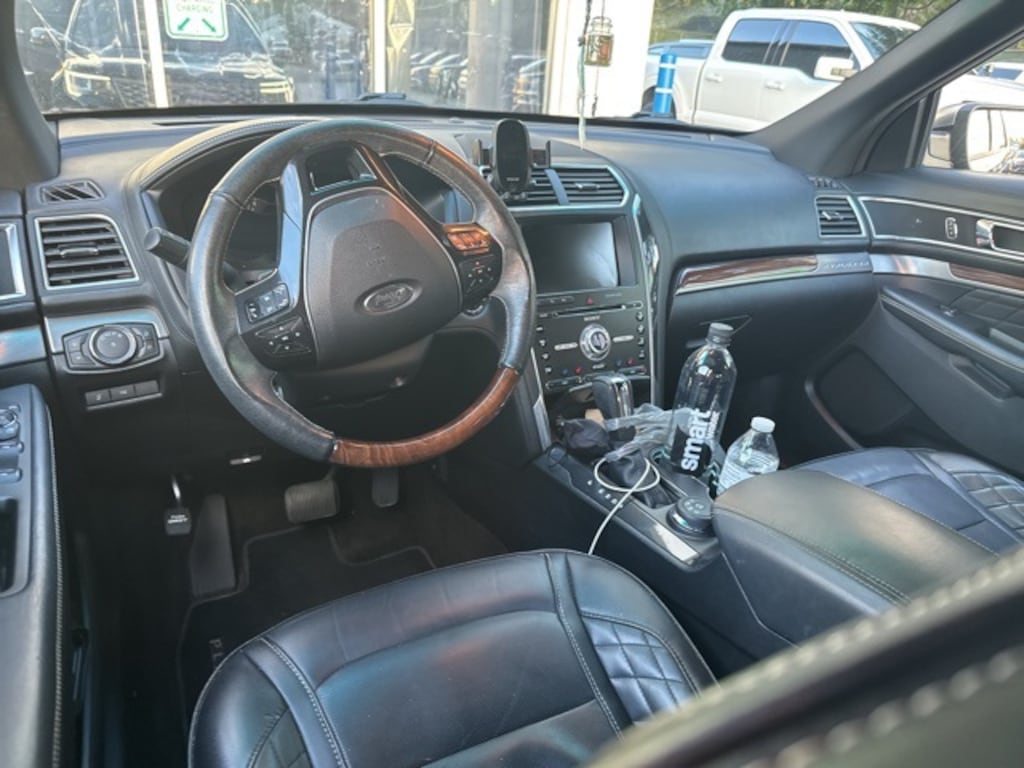 JUST ARRIVED. PENDING INSPECTION. Black 2016 Ford Explorer Platinum 4WD 6-Speed Automatic with Select-Shift 3.5L V6 We are currently offering Vehicle Purchase Home Delivery by appointment. Please contact for details., 4WD, 12 Speakers, 3.16 Axle Ratio, 3rd row seats: split-bench, 4-Wheel Disc Brakes, ABS brakes, Adjustable pedals, Air Conditioning, Alloy wheels, AM/FM radio: SiriusXM, Auto High-beam Headlights, Auto tilt-away steering wheel, Auto-dimming door mirrors, Auto-dimming Rear-View mirror, Automatic temperature control, Brake assist, Bumpers: body-color, CD player, Compass, Delay-off headlights, Driver door bin, Driver vanity mirror, Dual front impact airbags, Dual front side impact airbags, Electronic Stability Control, Emergency communication system: 911 Assist, Exterior Parking Camera Rear, Four wheel independent suspension, Front anti-roll bar, Front Bucket Seats, Front Center Armrest, Front dual zone A/C, Front fog lights, Front reading lights, Fully automatic headlights, Garage door transmitter, Genuine wood dashboard insert, Genuine wood door panel insert, Heated door mirrors, Heated front seats, Heated rear seats, Heated steering wheel, Illuminated entry, Knee airbag, Lane Departure Warning System, Leather steering wheel, Low tire pressure warning, Memory seat, Navigation System, Nirvana Multi Contour Leather Cooled Bucket Seats, Occupant sensing airbag, Outside temperature display, Overhead airbag, Overhead console, Panic alarm, Passenger door bin, Passenger vanity mirror, Pedal memory, Power door mirrors, Power driver seat, Power Liftgate, Power moonroof, Power passenger seat, Power steering, Power windows, Premium audio system: Sony, Radio data system, Radio: Premium Sound from Sony, Rain sensing wipers, Rear air conditioning, Rear anti-roll bar, Rear reading lights, Rear seat center armrest, Rear window defroster, Rear window wiper, Remote keyless entry, Roof rack: rails only, Security system, Speed control, Speed-sensing steering, Speed-Sensitive Wipers, Split folding rear seat, Spoiler, Steering wheel memory, Steering wheel mounted audio controls, SYNC w/MyFord Touch, Tachometer, Telescoping steering wheel, Tilt steering wheel, Traction control, Trip computer, Turn signal indicator mirrors, Variably intermittent wipers, Ventilated front seats, Wheels: 20" Bright Machined Face Aluminum, 4WD.