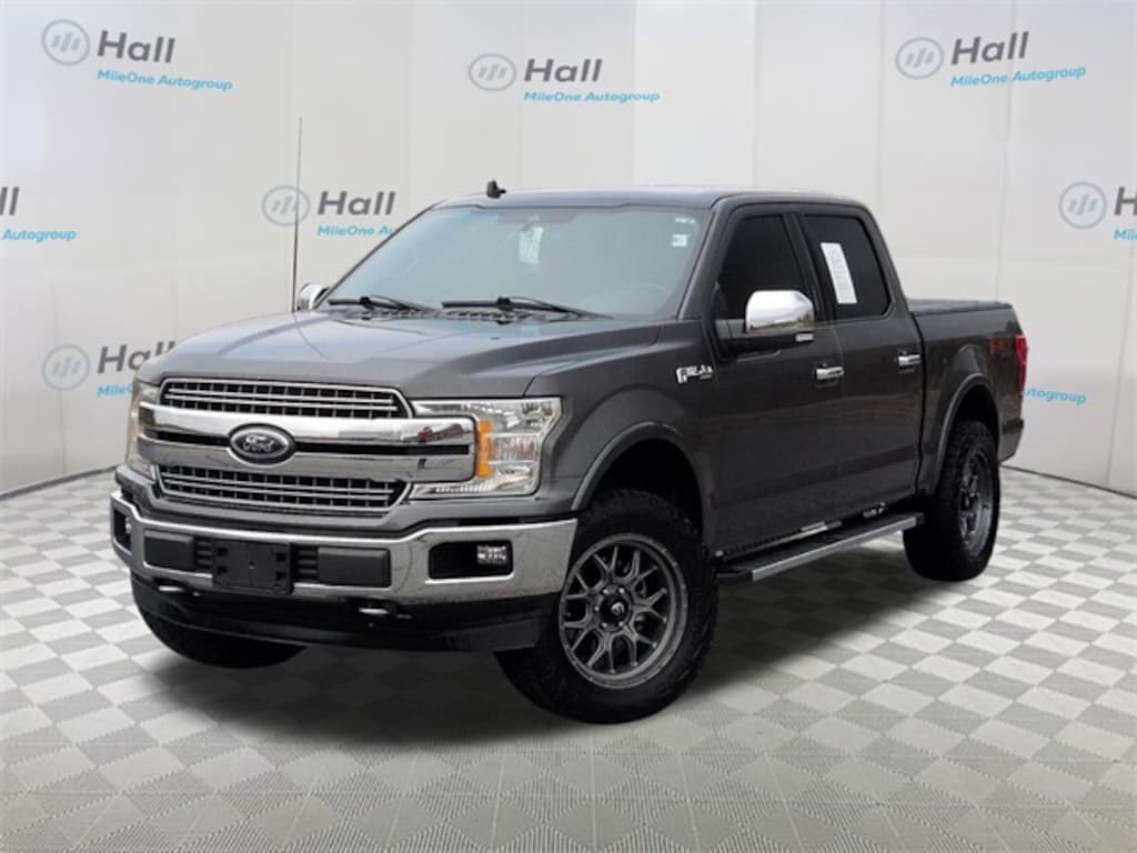 Magnetic 2020 Ford F-150 Lariat 4WD 10-Speed Automatic 5.0L V8 We are currently offering Vehicle Purchase Home Delivery by appointment. Please contact for details., 4WD, 110V/400W Outlet, 18" Machined-Aluminum Wheels, 4-Wheel Disc Brakes, 7 Speakers, ABS brakes, Adjustable pedals, Air Conditioning, Alloy wheels, AM/FM radio: SiriusXM, Auto High-beam Headlights, Auto-dimming door mirrors, Auto-dimming Rear-View mirror, Automatic temperature control, Brake assist, Bumpers: chrome, Chrome 2-Bar Grille w/4 Minor Bars, Chrome Angular Step Bars, Chrome Door & Tailgate Handles w/Body-Color Bezel, Chrome Skull Caps on Exterior Mirrors, Class IV Trailer Hitch Receiver, Compass, Delay-off headlights, Driver door bin, Driver vanity mirror, Dual front impact airbags, Dual front side impact airbags, Electronic Stability Control, Emergency communication system: SYNC 3 911 Assist, Engine Oil Cooler, Equipment Group 501A Mid, Extended Range 36 Gallon Fuel Tank, Exterior Parking Camera Rear, Front anti-roll bar, Front Center Armrest w/Storage, Front dual zone A/C, Front fog lights, Front License Plate Bracket, Front reading lights, Front wheel independent suspension, Fully automatic headlights, FX4 Off-Road Package, GVWR: 7,050 lbs Payload Package, Heated door mirrors, Heated front seats, Illuminated entry, Integrated Trailer Brake Controller, Lariat Bed Utility Package, Lariat Chrome Appearance Package, Leather-Trimmed 40/20/40 Front Seat, Low tire pressure warning, Memory seat, Occupant sensing airbag, Outside temperature display, Overhead airbag, Overhead console, Panic alarm, Passenger door bin, Passenger vanity mirror, Pedal memory, Power door mirrors, Power driver seat, Power Glass Sideview Mirr w/Body-Color Skull Caps, Power passenger seat, Power steering, Power windows, Pro Trailer Backup Assist, Radio data system, Radio: AM/FM Stereo w/6 Speakers, Rear reading lights, Rear seat center armrest, Rear step bumper, Rear window defroster, Remote keyless entry, Remote Start System w/Remote Tailgate Release, Reverse Sensing System, Security system, Single-Tip Chrome Exhaust, SiriusXM Radio, Speed control, Speed-sensing steering, Split folding rear seat, Steering wheel mounted audio controls, SYNC 3, Tachometer, Tailgate Step w/Tailgate Lift Assist, Telescoping steering wheel, Tilt steering wheel, Traction control, Trailer Tow Package, Tray Style Floor Liner, Trip computer, Turn signal indicator mirrors, Twin Panel Moonroof, Upgraded Front Stabilizer Bar, Variably intermittent wipers, Ventilated front seats, Voice-Activated Touchscreen Navigation, Voltmeter, Wheels: 18" Chrome-Like PVD, Wheels: 20" Chrome-Like PVD, 4WD.