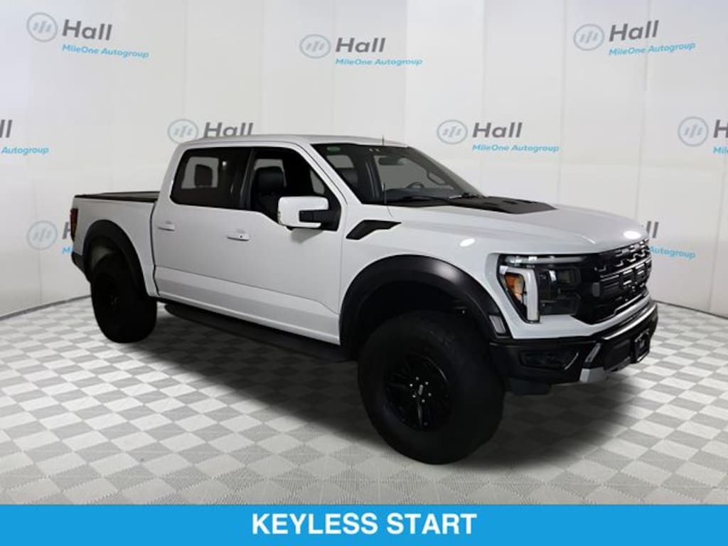 Oxford White 2024 Ford F-150 Raptor 4WD 10-Speed Automatic 3.5L V6 EcoBoost We are currently offering Vehicle Purchase Home Delivery by appointment. Please contact for details., 4WD, 14 Speakers, 17" Cast Aluminum Wheels, 4-Wheel Disc Brakes, ABS brakes, Adaptive suspension, Adjustable pedals, Air Conditioning, Alloy wheels, AM/FM radio: SiriusXM with 360L, Auto High-beam Headlights, Auto tilt-away steering wheel, Auto-dimming door mirrors, Auto-dimming Rear-View mirror, Automatic temperature control, Brake assist, Bumpers: body-color, Compass, Delay-off headlights, Driver door bin, Driver vanity mirror, Dual front impact airbags, Dual front side impact airbags, Electronic Locking w/4.10 Axle Ratio, Electronic Stability Control, Emergency communication system: SYNC 4 911 Assist, Equipment Group 801A Standard, Front anti-roll bar, Front Bucket Seats, Front Center Armrest, Front dual zone A/C, Front fog lights, Front reading lights, Front wheel independent suspension, Fully automatic headlights, Garage door transmitter, Heads-Up Display, Heated door mirrors, Heated front seats, Heated rear seats, Heated steering wheel, Illuminated entry, Lane Departure Warning System, Leather Trim Seats, Low tire pressure warning, Memory seat, Navigation system: Connected Navigation, Occupant sensing airbag, Outside temperature display, Overhead airbag, Overhead console, Panic alarm, Passenger door bin, Passenger vanity mirror, Pedal memory, Power door mirrors, Power driver seat, Power passenger seat, Power steering, Power windows, Radio data system, Radio: B&O Unleashed Sound System by Bang & Olufsen, Rain sensing wipers, Rear reading lights, Rear step bumper, Rear window defroster, Remote keyless entry, Security system, Speed control, Speed-sensing steering, Split folding rear seat, Steering wheel memory, Steering wheel mounted audio controls, SYNC 4 w/Enhanced Voice Recognition, Tachometer, Telescoping steering wheel, Tilt steering wheel, Traction control, Trip computer, Turn signal indicator mirrors, Twin Panel Moonroof, Variably intermittent wipers, Ventilated front seats, 4WD.