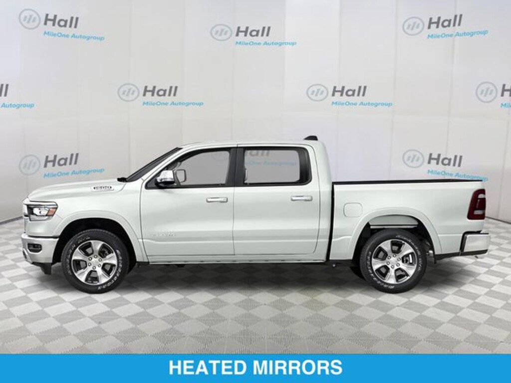 Bed Utility Group (MOPAR 4 Adjustable Cargo Tie-Down Hooks and Pick-Up Box Lighting), Laramie Level II Equipment Group (2nd Row In Floor Storage Bins, 4G LTE Wi-Fi Hot Spot, 8.4" Touchscreen Display, All R1 High Radios, All Radio Equipped Vehicles, Apple CarPlay, Auto High Beam Headlamp Control, Blind Spot & Cross Path Detection, Connected Travel & Traffic Services, Connectivity - US/Canada, Disassociated Touchscreen Display, Foam Bottle Insert (Door Trim Panel), For Details, Visit DriveUconnect.com, For More Info, Call 800-643-2112, Global Telematics Box Module (TBM), Google Android Auto, GPS Antenna Input, GPS Navigation, HD Radio, Integrated Center Stack Radio, Integrated Voice Command w/Bluetooth, ParkSense Front/Rear Park Assist w/Stop, Radio: Uconnect 5 Nav w/8.4" Display, Rain Sensitive Windshield Wipers, Remote Tailgate Release, SiriusXM Radio Service, SiriusXM w/360L, USB Host Flip, and Wireless Charging Pad), Quick Order Package 25H Laramie, #1 Seat Foam Cushion, 10 Speakers, 3 Rear Seat Head Restraints, 3.21 Rear Axle Ratio, 4 Way Front Headrests, 4-Wheel Disc Brakes, 48V Belt Starter Generator, ABS brakes, Adjustable pedals, Air Conditioning, Alloy wheels, AM/FM radio: SiriusXM, Anti-Spin Differential Rear Axle, Apple CarPlay/Android Auto, Audio memory, Auto-dimming door mirrors, Auto-Dimming Exterior Driver Mirror, Auto-dimming Rear-View mirror, Automatic temperature control, Brake assist, Bumpers: chrome, Chrome Exterior Mirrors, Compass, Convex Wide-Angle Mirror Insert, Delay-off headlights, Dome Dual LED Reading Lamp, Driver door bin, Driver Seat Memory, Driver vanity mirror, Dual front impact airbags, Dual front side impact airbags, Dual-Pane Panoramic Sunroof, Electronic Stability Control, Exterior Mirrors Courtesy Lamps, Exterior Mirrors w/Heating Element, Exterior Mirrors w/Memory, Exterior Mirrors w/Supplemental Signals, Front anti-roll bar, Front Center Armrest w/Storage, Front dual zone A/C, Front fog lights, Front License Plate Bracket, Front reading lights, Front Seat Back Map Pockets, Front wheel independent suspension, Fully automatic headlights, Garage door transmitter, Heated door mirrors, Heated Front Seats, Heated front seats, Heated Steering Wheel, Heated steering wheel, Heavy-Duty Engine Cooling, Illuminated entry, Leather steering wheel, Leather Trim 40/20/40 Bench Seat, LED Dome/Reading Lamp, Low tire pressure warning, Memory seat, Occupant sensing airbag, Outside temperature display, Overhead airbag, Overhead console, Panic alarm, ParkView Rear Back-Up Camera, Passenger door bin, Passenger vanity mirror, Pedal memory, Power 2-Way Driver Lumbar Adjust, Power 2-Way Passenger Lumbar Adjust, Power 8-Way Driver & Passenger Seats, Power door mirrors, Power driver seat, Power passenger seat, Power steering, Power windows, Power-Folding Mirrors, Radio data system, Radio: Uconnect 5 W w/8.4" Display, Rear 60/40 Folding Seat, Rear anti-roll bar, Rear seat center armrest, Rear step bumper, Rear Wheelhouse Liners, Rear window defroster, Remote keyless entry, Security system, Speed control, Split folding rear seat, Steering wheel mounted audio controls, Tachometer, Telescoping steering wheel, Tilt steering wheel, Traction control, Trailer Brake Control, Trip computer, Turn signal indicator mirrors, Variably intermittent wipers, Ventilated Front Seats, Ventilated front seats, Voltmeter, and Wheels: 18" x 8" Aluminum Base PainteD. Recent Arrival!